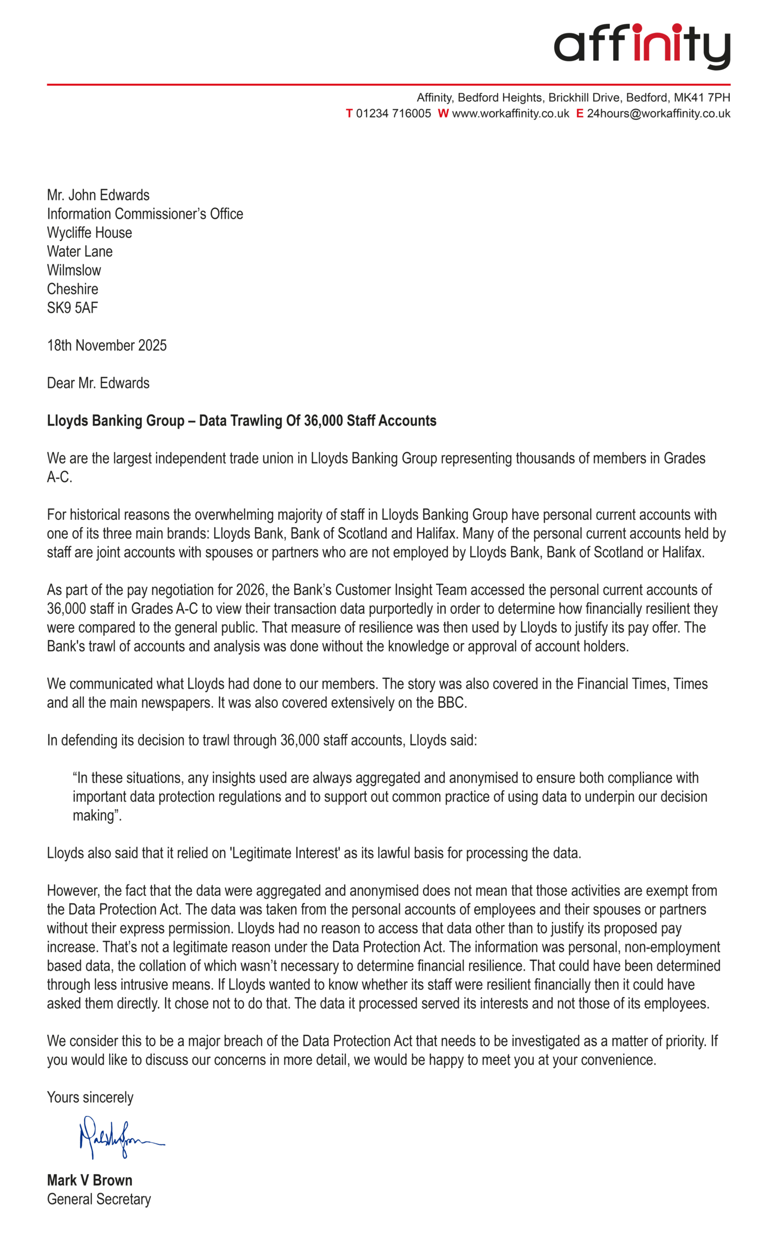 - Letter To The Information Commissioner: Lloyds Banking Group – Data Trawling Of 36,000 Staff Accounts 18th November 2025